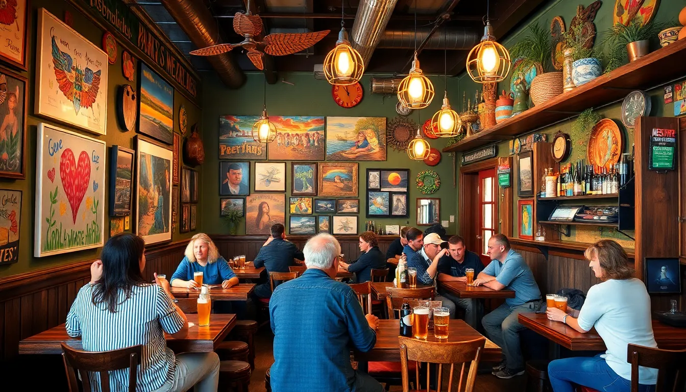 Local artwork fills the walls, showcasing creativity and reflecting community culture. Handcrafted furnishings contribute to the cozy feel of the space, encouraging social interactions among visitors. Rotating decor aligns with seasonal themes, creating a fresh experience in every visit. Communal seating arrangements foster connections, making it easy for guests to share stories over a pint. Soft lighting and lively music amplify the welcoming ambiance, enticing guests to linger longer. Bright colors and unique design elements inspire creativity, enhancing the overall enjoyment of the space.