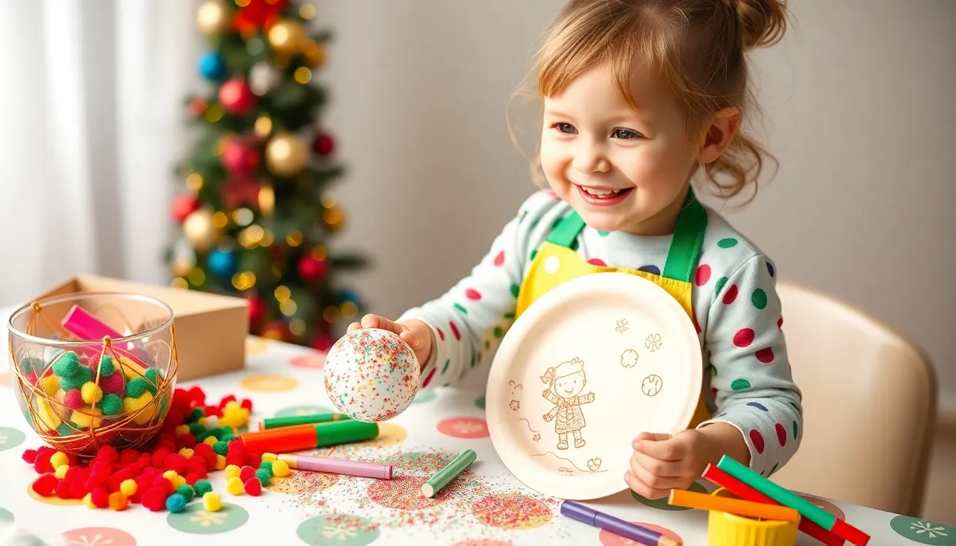 Paper plate ornaments present a fun, easy craft for young children. Gather supplies like paper plates, glue, glitter, and markers. Cut the plates into festive shapes, such as stars or Christmas trees. Toddlers enjoy decorating with colorful markers and glitter, adding their unique flair. Once decorated, hang the ornaments on a tree or around the house. This project develops fine motor skills and encourages imaginative play.